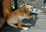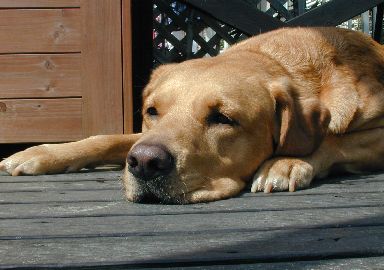 天気が良くあまり暑くない日にはレオはウッドデッキでのんびりと過ごします。