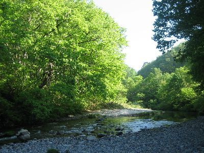 朝の河原の様子です。のんびりと起床し沢水で洗顔、気持ちが良い!