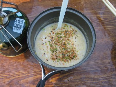 呑んだ翌朝は残りご飯でたまご雑炊とさつぱり朝食。