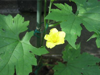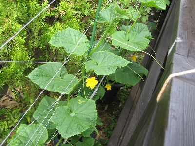 緑のスクリーンをめざして植えたきゅうり、へちまの様子です。