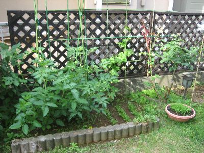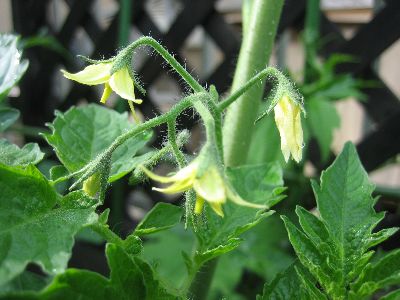 トマトとゴーヤの花です。エンサイとエンスイも無事に育っています。