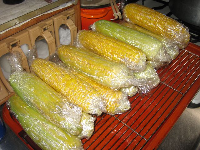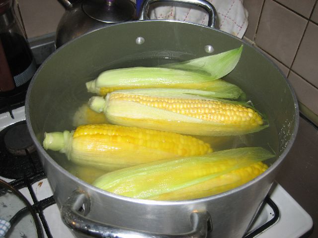 とうもろこしは取れたてをすぐに茹でることです。美味しいゆで方は(毎年恒例)沸騰したお湯に3分、色が変われば終了。