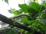 天井部分のヘチマが一段とツルを長くし始めました。葉は大きく茂り枝も少しずつと伸びています。