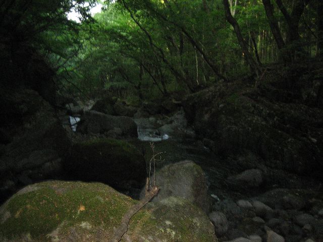 暗いうちの現地着で日の出を待ち仮眠です。暗い森に沢音が響きます。