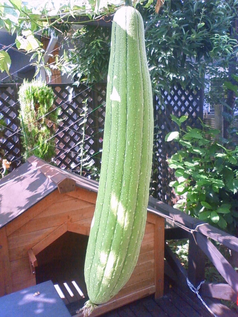 いっぱいへちまを食べましたがまだまだ育っています。その一本をたわし用に放置そして60cmほどに