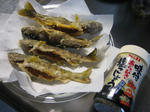 あまり一気に温度を上げずに揚げました。もちろん頭からがぶりとサクサクにです。
