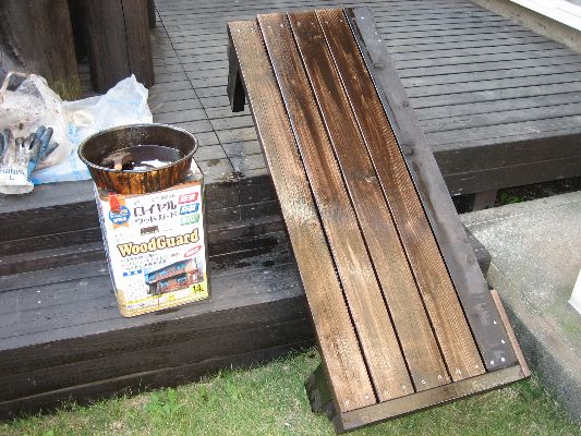 基礎は必要のない部分ですので簡単。安い材料ですので防腐剤は必修ですね。
