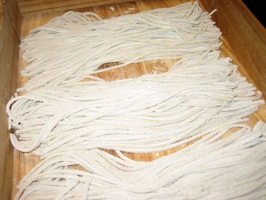 味の良い三依の蕎麦粉。そして打ち上げた蕎麦の様子。本番は年越し蕎麦です(^^;)