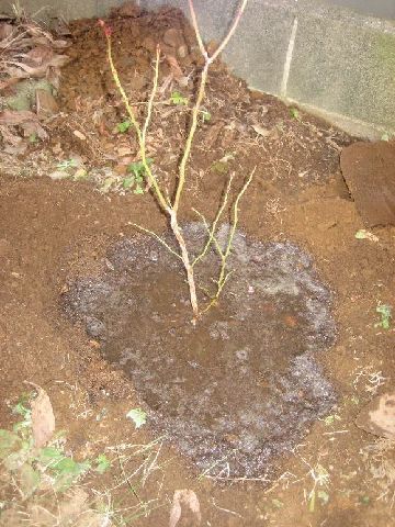 さらに根の回り直径40cmで盛り土をしてさらに水バケツ小二杯程度を与えます。