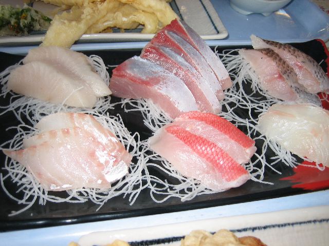 さしみの6点盛りは鮮度抜群で美味しい。