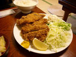 ヒレカツ定食、厚みのあるヒレ肉はとても軟らかい。ヒレカツ定食は1500円