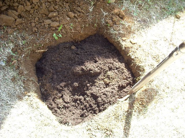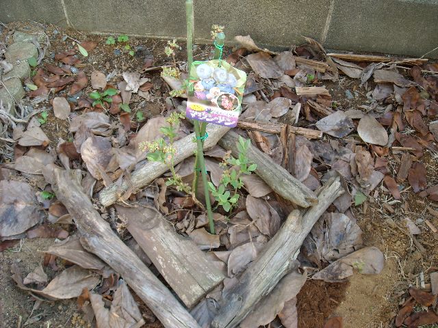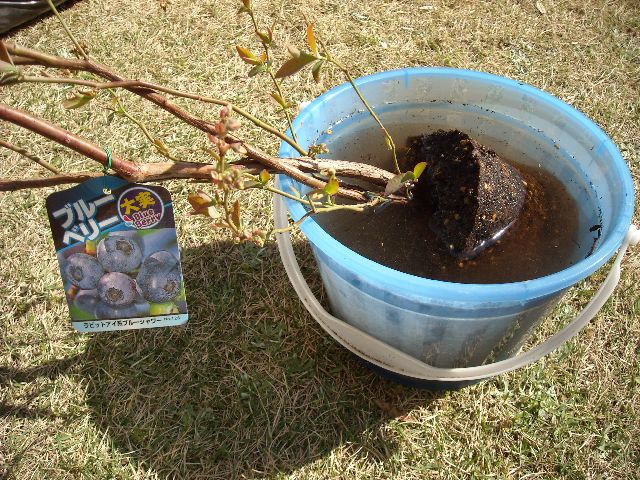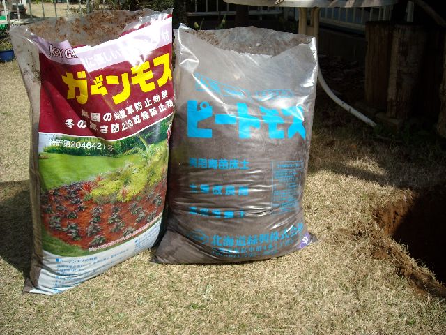 前回よりさらに大きく穴を空けてたっぷりとピートモスを加えました。大実のブルーシャワーという品種