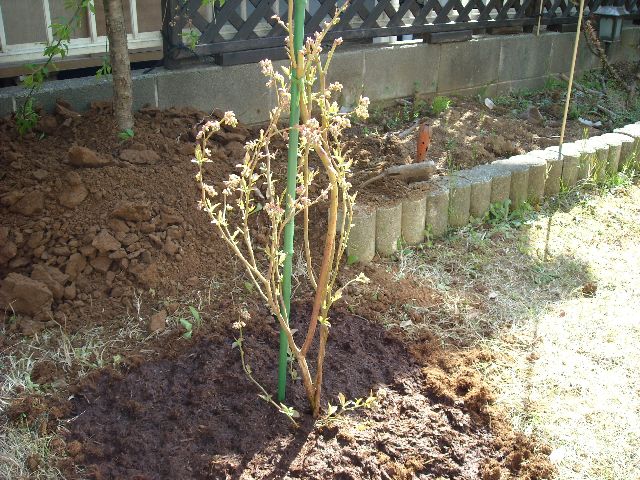 温かくなってきましたので先日に続きブルーベリーをもう一本植え付けました。