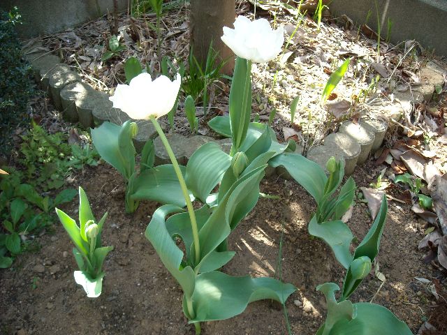 華やかにチューリップ。桔梗の新芽凄く強靱です、枯れたのかと思うとまた出てきます。楽しみ!