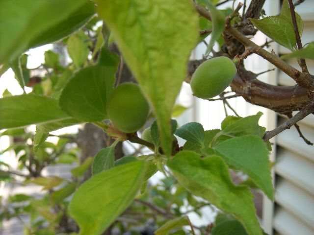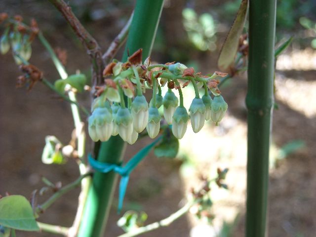 先日花を咲かせていた梅は実を膨らませています。植えたブルーベリーも順調。