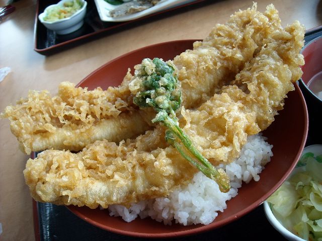 穴子天丼・カレイの唐揚げ、美味しかったです。金目鯛の煮付けは時価でした。たまに贅沢を