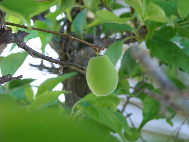 二本は木を育てる為に花芽はすべて切りました。元気の良い一本だけ残して実がなるのを