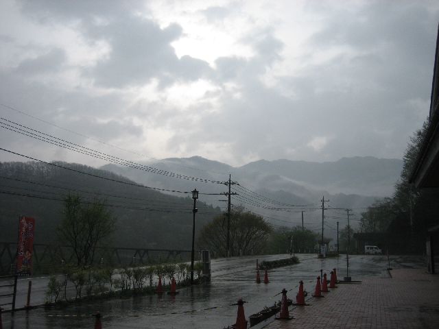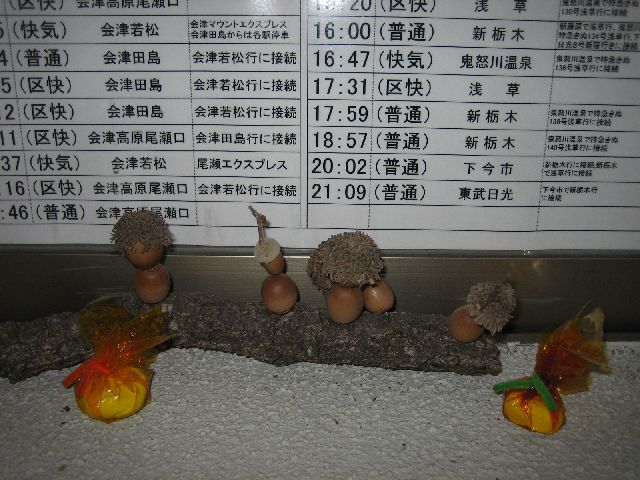 夜が明けたら大雨になっておりもやっています。湯西川温泉駅には秋の名残りが可愛く残っていました。