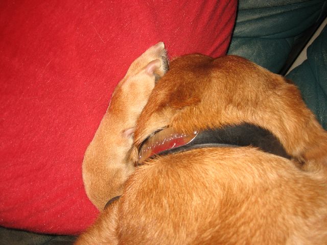 ラブラドールのレオ君ですがひょいと見るとこれまた不思議なと言うか可愛い寝姿です。