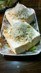 キャンプの帰りに三依松やさんで豆腐を買いました。帰って中華風やっこです。極上のちりめんじゃこをたっぷり!豆腐もしっかりと美味しい!