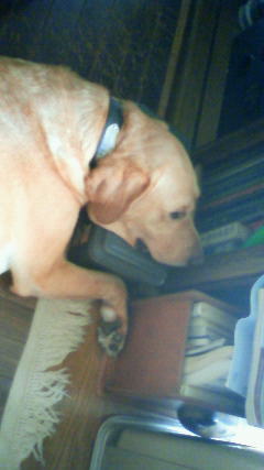 暑さと湿気にぐったりしているレオ蔵くんは工具箱を枕にして休んでます(笑)