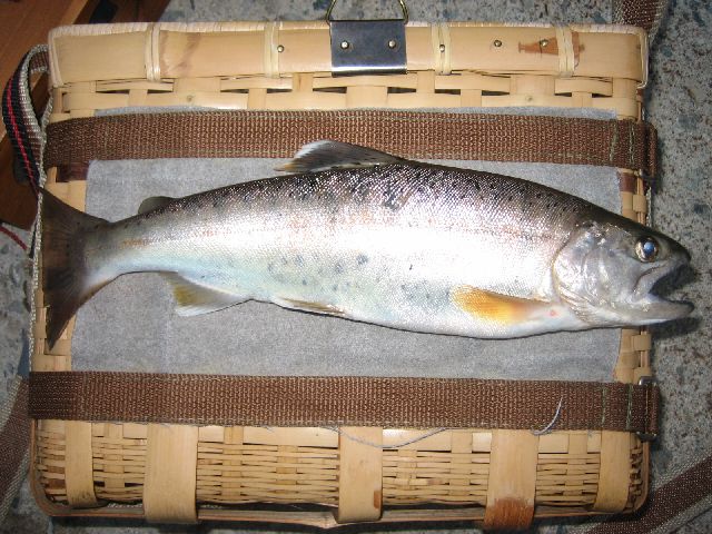 大きく深呼吸 尺手前、無き尺のヤマメです。毛鉤が上顎に この一尾です。