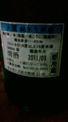 栃木県天鷹純米原酒を以前に呑んでふたたび呑みたくなり先日地元の酒屋さんで手に入れてきました。原酒は18度から19度あり酒屋店主からのすすめで日本酒ロックです。これが薄く感じることなく14度程度の味になりますヽ(´▽`)/わからないのですがいつも原酒が有るわけではないらしい?酒屋の都合ではなく季節性があるらしい(^o^;