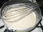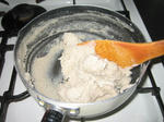 強火で一気に混ぜていきます。火は強火のままで粘りが出るようにしっかりとヘラで混ぜます。焦げないように注意します。火から鍋をおろして形を整えます。