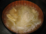 一つはシンプルに蕎麦を味わうのでお湯を注いだもの、もう一つは玉葱と鶏肉のコンソメスープを注いだものの2種類です。お酒を呑んでいるつまみには左の基本的な蕎麦掻き、呑んだ後にお腹がすいたり小腹が空いたりした時は鶏肉のスープ入りが美味しいです。一人で二人前を頂いちゃいました。