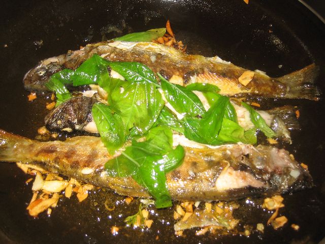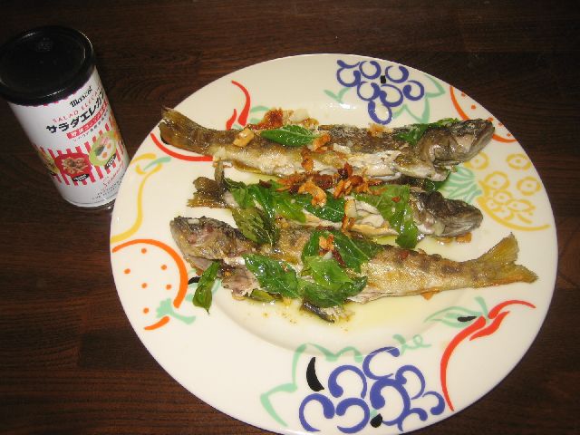 自分でもチャレンジ料理ム ニエル風でもなく、にんにくとバジルだけで焼きました