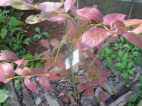 春先に植えたブルーベリーが紅葉し始めました。