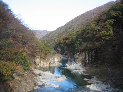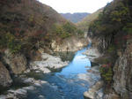 むささび橋から下流の眺めです。先に見える橋は虹見橋です。