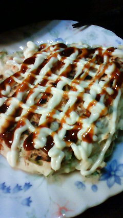 海鮮お好み焼きです。夕飯ですけどね。しかしながら休肝日(T_T)(笑)