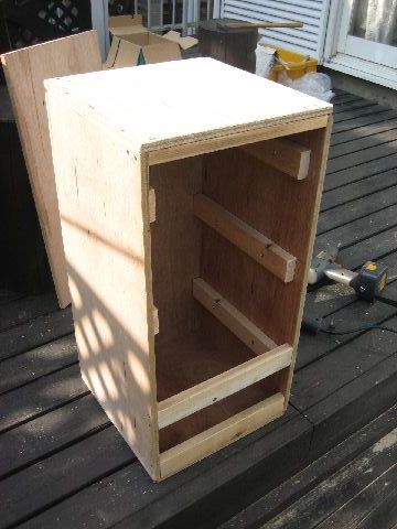 サイズはほぼ30cm角です。長さは60cm。中の棚は三段で網を使用し吊すことも出来るように最上段は高い位置にしました。