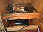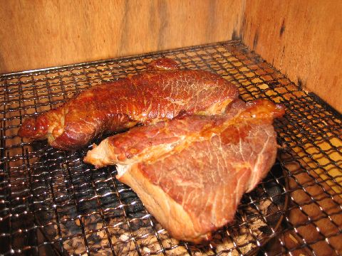 途中点検、もっときつくスモークします。終了の少し手前でチーズを加えてスモークします。