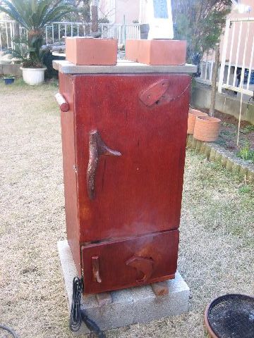 コメントありがとうございます。スモーカーの取っ手は流木です。塗装は柿渋で仕上げた物です。(^^;)