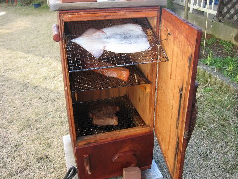 ベーコンと一夜干しのイカとチーズも燻製に・・・