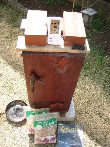 手作りのマイ燻製器もすっかり年季の入った風合いになっています。冷燻温度20度以下で・・・