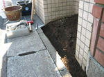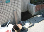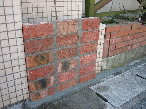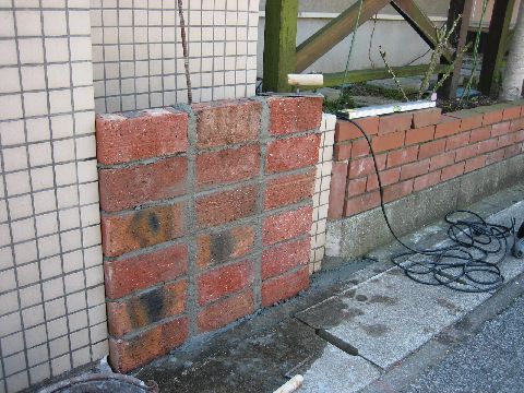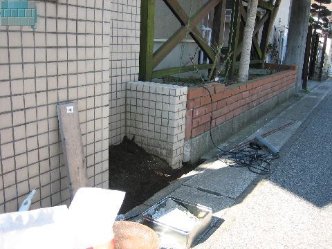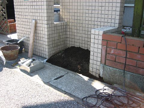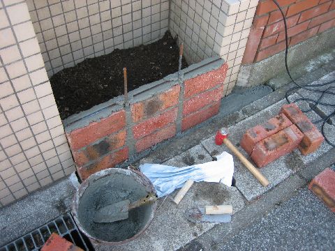コの字のスペースを煉瓦で囲って使いやすくします。