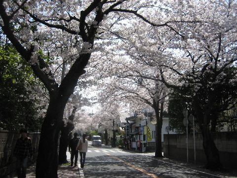 街並み自体が桜でいっぱいです。猫も花見するほどに心地よいです。