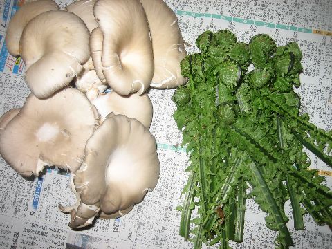 ひらたけとこごみです。バター炒めはいけると思います。
