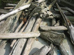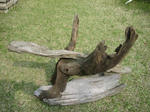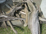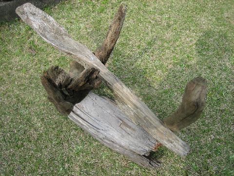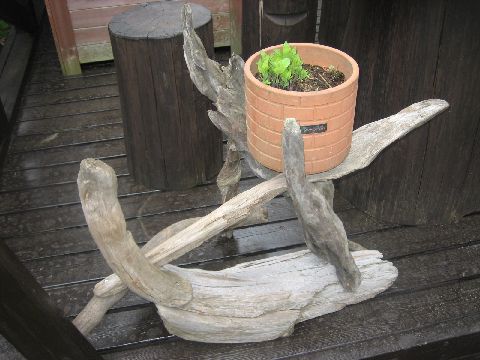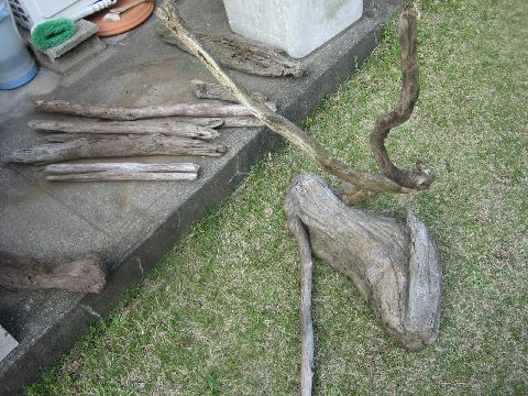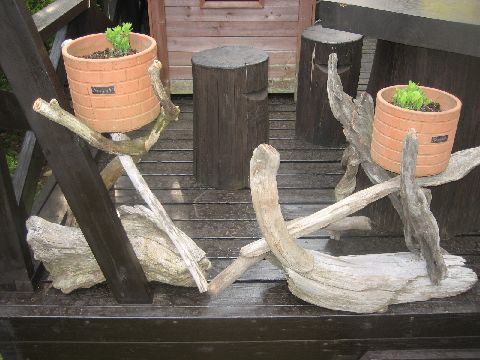 形の良い物は置物にしておりますが庭先には禁漁期間も沢への思いをと流木が置いてあります。