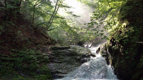 深い渓に日射しが差し込む・・・とても良い景色です。