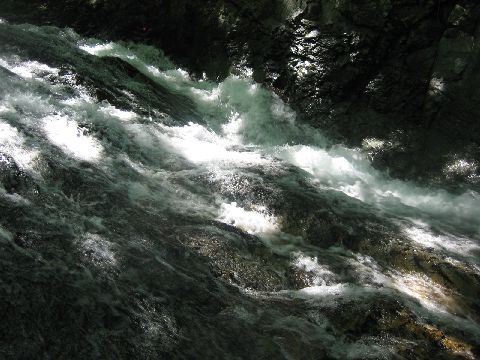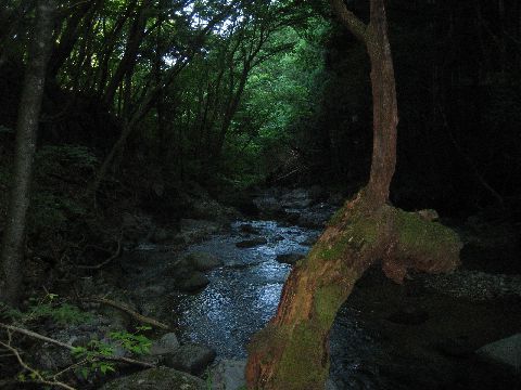 そして最後の滝壺、一人では高巻くことも出来ません。20分ほど頑張るもアタリ無しどん深か仕掛けも???と静御前・・・最後にと取っておいたメタボサイズのミミズを投入!