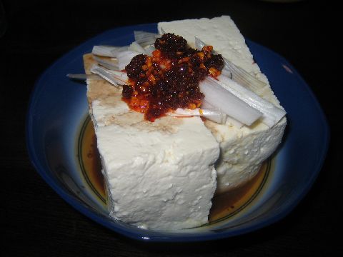 上にのっているのはねぎと食べるラー油です。豆腐のうまさが前提ですがお試しあれ!