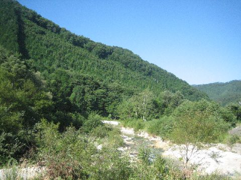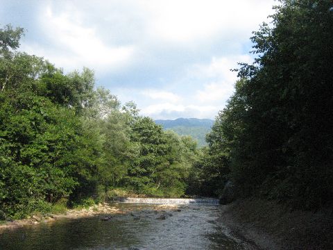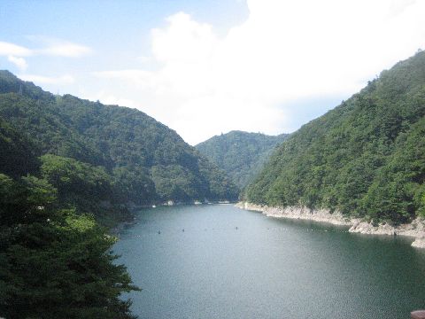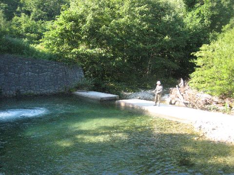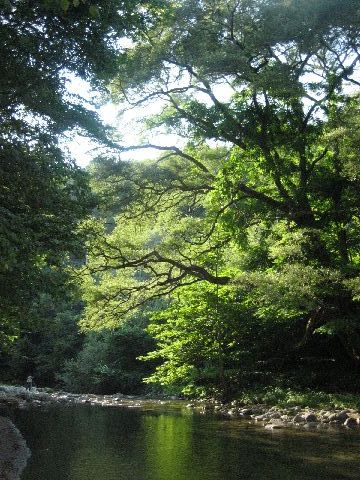 夏の終わりで9月前と言うこともあり水量が少なめの川の状態
