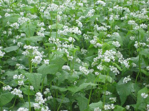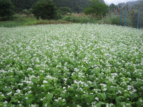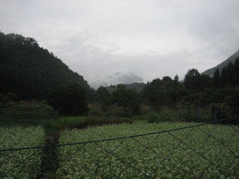 蕎麦の花が綺麗に咲いています。さらに雨は強くなってきました。