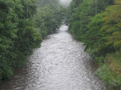 恵みの雨で増水です。釣りは明日に期待です。