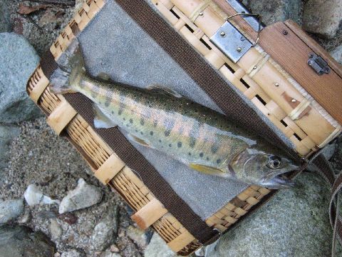 じっくりと澄んだ瀬を流します。気配を消ししばらくすると型揃いの見事な山女魚が迎えてくれました。