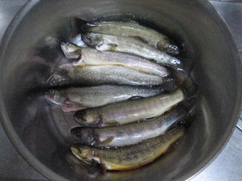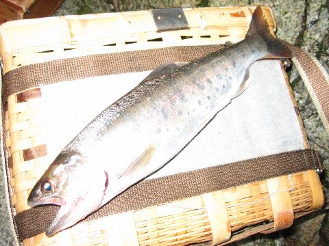 素晴らしい山女魚が1尾 残りが岩魚 もうこれ以上は良いと申し出て渓を後にしました。